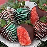 Golden State Fruit , Pretty enough to hang on the tree, these six holiday themed giant California strawberries are dipped in real premium dark chocolate and decorated with rich, white chocolate, then sprinkled red and green sparkling sanding sugars. ...
